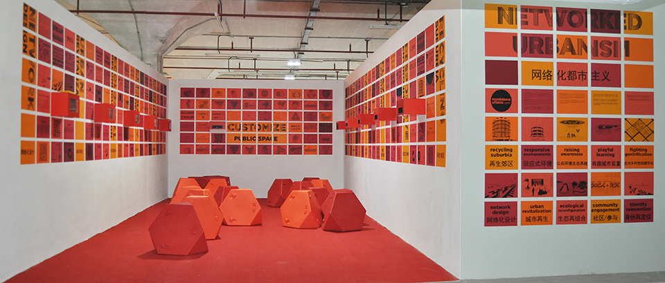Networked Urbanism installation at the UABB Biennale displays a selection of pilot projects exploring physical and immaterial urban improvement, a critical catalog of their urban contexts, the understanding of urban complexity and the new tools developed to address it. The colorful multimedia exhibition displays 10 pilots projects, implemented during the past 10 years in different contexts around the world, but also displays 1 mockup, a real scale version of urban furniture design.